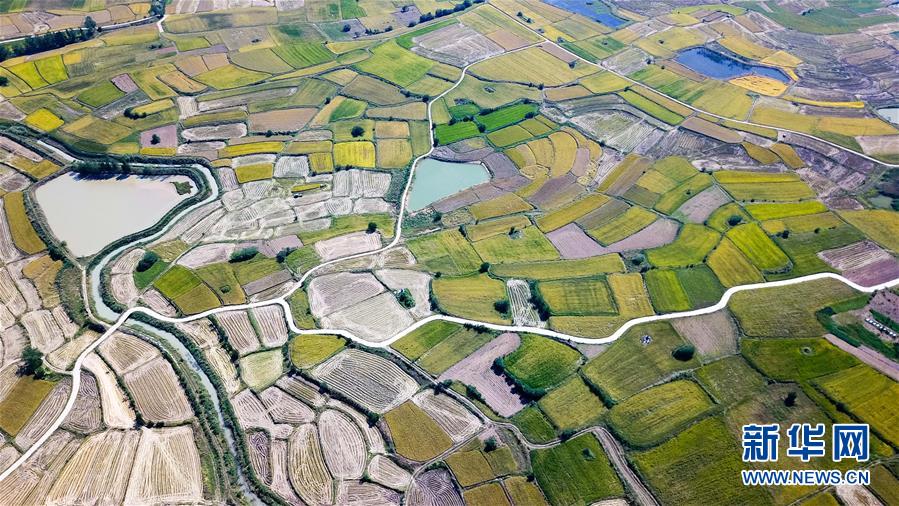 這是小崗村的稻田(9月26日無人機(jī)拍攝)。 新華社記者 劉軍喜攝