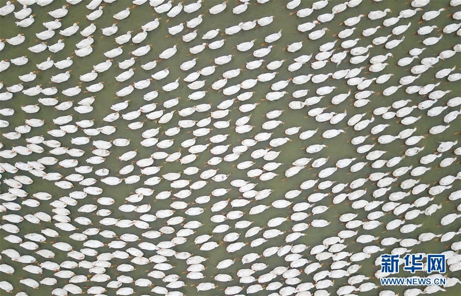 這是小崗村一處養(yǎng)殖鴨子的水塘(9月16日無人機(jī)拍攝)。 新華社記者 才揚(yáng)攝