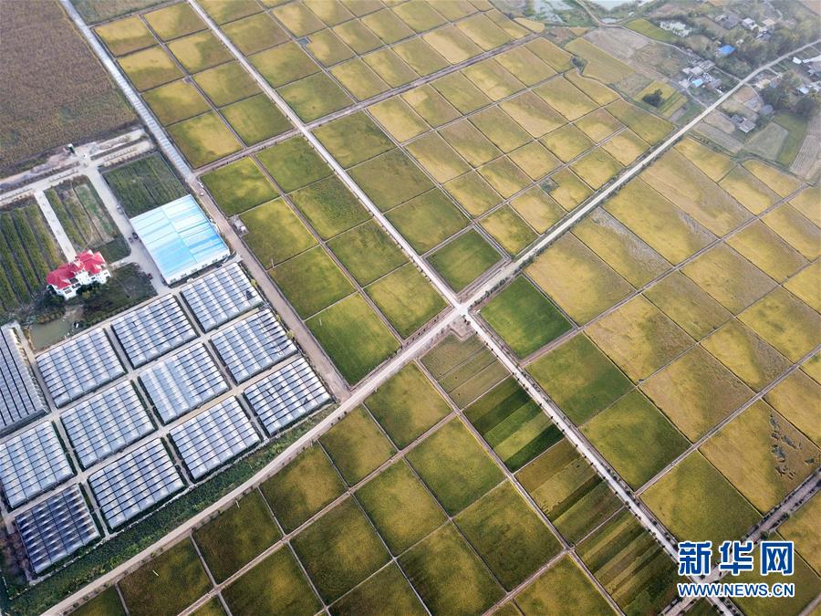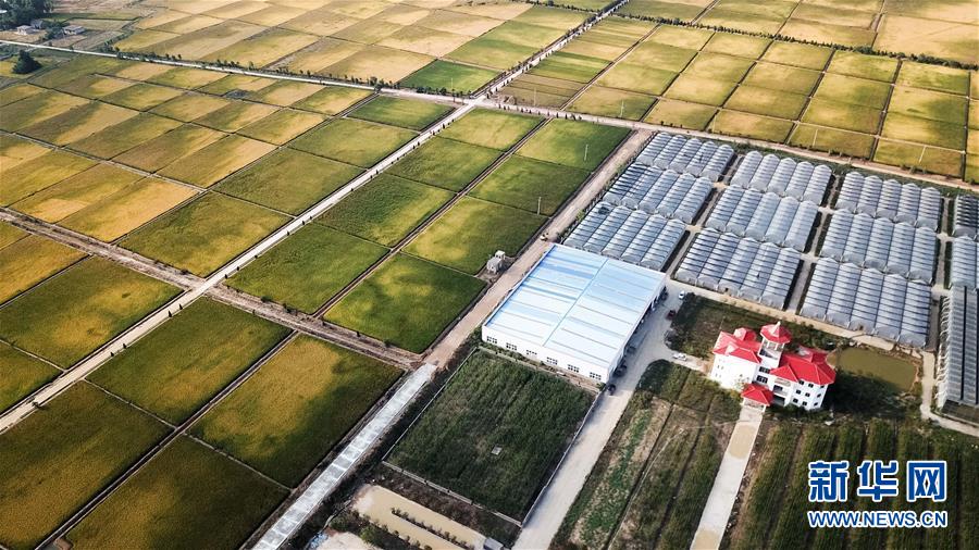 這是北大荒集團(tuán)在小崗村建立的現(xiàn)代化水稻生產(chǎn)基地(9月27日無人機(jī)拍攝)。 新華社記者 張端攝
