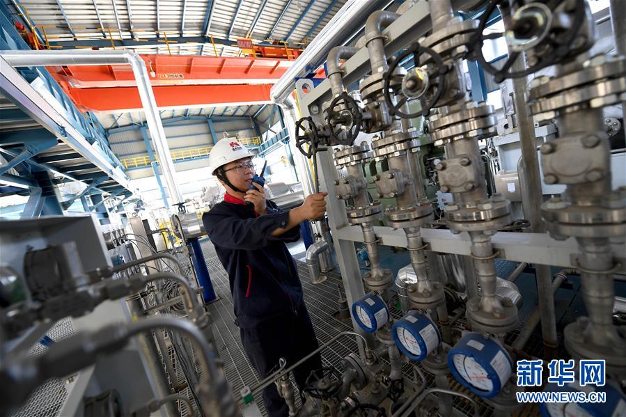延安煤油氣資源綜合利用項目甲醇制烯烴中心的工作人員進(jìn)行設(shè)備巡檢(9月28日攝)。新華社記者劉瀟攝