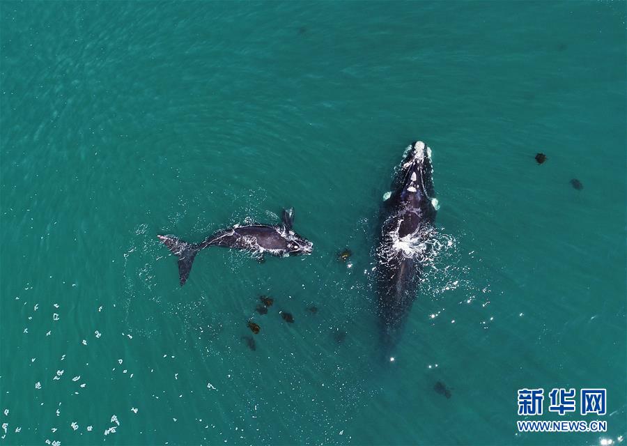 9月30日,在南非赫曼紐斯小鎮(zhèn)附近海面上,南露脊鯨在海岸邊暢游。9月29日,位于開普敦以東約115公里的赫曼紐斯小鎮(zhèn)迎來2018年的鯨魚節(jié),來自世界各地的游客可乘船出海觀鯨,也可在岸邊等待鯨魚的到來。新華社記者陳誠(chéng)攝