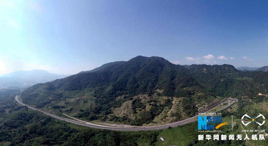 這是改擴建工程施工之后的風霜嶺隧道外景觀。道路拓寬,坡度平緩(無人機拍攝)。新華網(wǎng) 肖和勇 攝