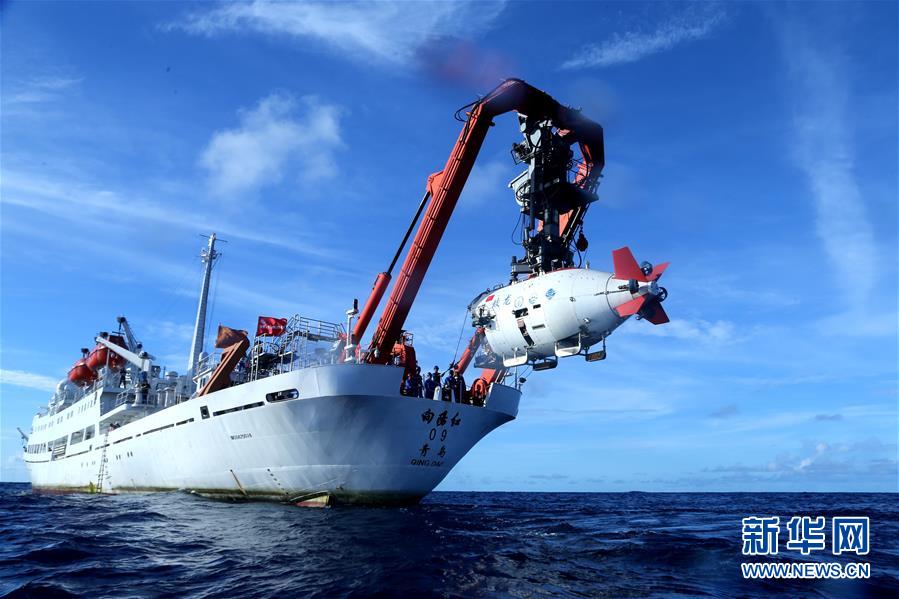 在西太平洋海域,“蛟龍”號載人潛水器離開“向陽紅09”科學考察船準備進入水中,進行中國大洋38航次最后一潛(2017年6月13日攝)。 從一曲“東方紅”到“天宮”游太空,從國產(chǎn)航母下水到“蛟龍”深海探秘,經(jīng)過新中國成立以來特別是改革開放以來的不懈努力,中國科技創(chuàng)新整體能力持續(xù)躍升。 創(chuàng)新是引領(lǐng)發(fā)展的第一動力。堅定不移地走中國特色自主創(chuàng)新之路,既不盲目自信、也不妄自菲薄,中國科技創(chuàng)新正迎來歷史性跨越,神州大地回蕩著“第一動力”的時代交響。 新華社記者劉詩平攝