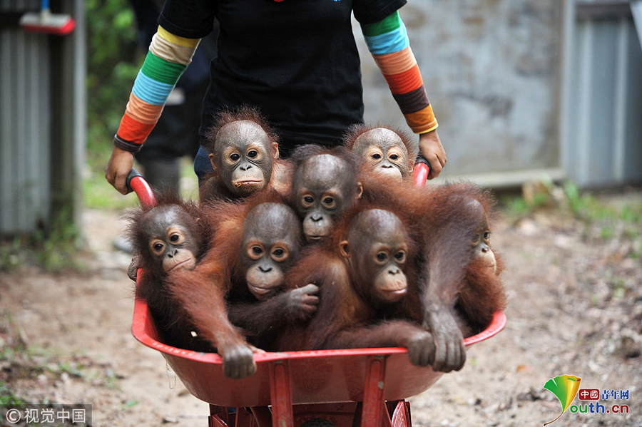印尼動(dòng)物救援中心里 猩猩寶寶擠“校車(chē)”“上學(xué)”超萌