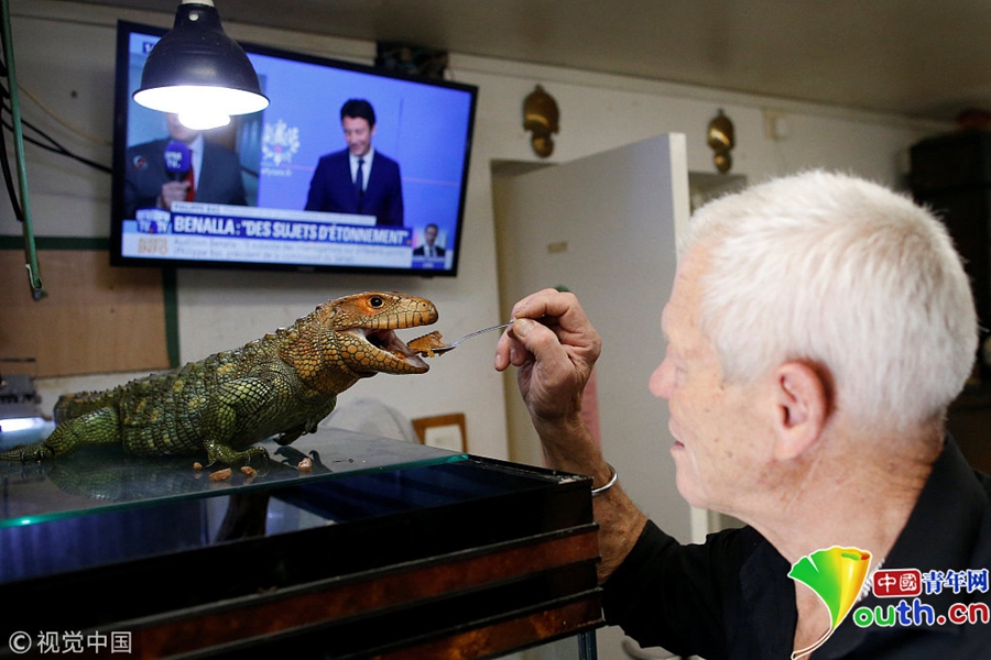 中國(guó)青年網(wǎng)北京9月21日電 當(dāng)?shù)貢r(shí)間2018年9月19日,法國(guó)67歲的法國(guó)男子Philippe Gillet與400多只爬行動(dòng)物生活在一起,有鱷魚(yú)、蜥蜴、眼鏡蛇等等。