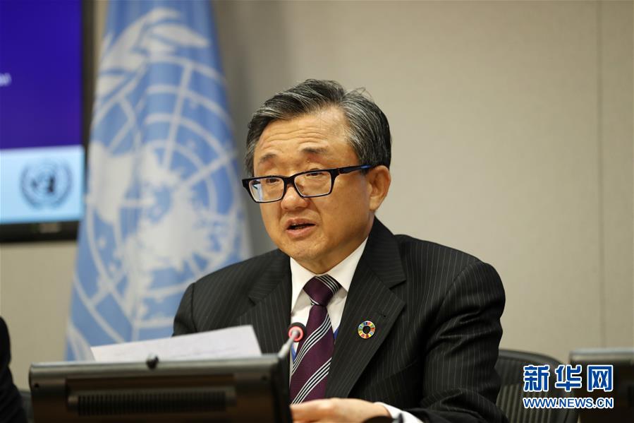 10月8日,在位于紐約的聯(lián)合國(guó)總部,聯(lián)合國(guó)負(fù)責(zé)經(jīng)濟(jì)和社會(huì)事務(wù)的副秘書長(zhǎng)劉振民向記者介紹《2018年世界經(jīng)濟(jì)和社會(huì)概覽》。新華社記者李木子攝