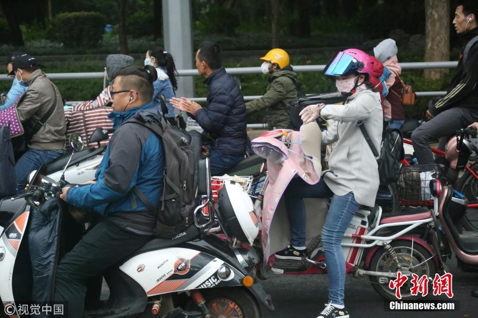 2018年10月9日,山東濟(jì)南,昨日一場秋雨過后開始降溫,今天清晨最低氣溫只有6度,馬路上不少上班族穿上羽絨服騎車趕上班路。 圖片來源:視覺中國
