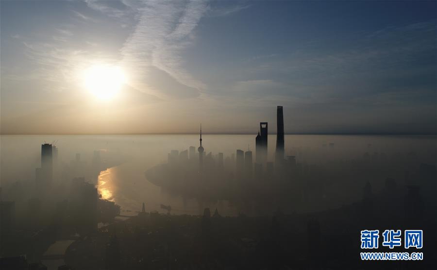 上海浦東陸家嘴晨曦(2017年9月20日無(wú)人機(jī)拍攝)。新華社記者 丁汀 攝