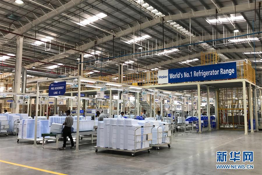 2017年11月16日,工人在位于印度馬哈拉施特拉邦浦那市的中國海爾集團(tuán)工業(yè)園廠房?jī)?nèi)工作。