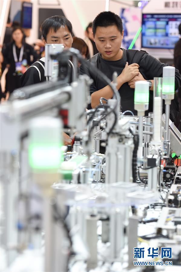 10月11日,觀眾在博覽會現(xiàn)場觀看模塊化自動(dòng)生產(chǎn)線。 當(dāng)日,2018世界智能制造大會·智領(lǐng)全球博覽會在南京國際博覽中心開展。本次博覽會以“賦能升級,智造未來”為主題,總展示面積約5萬平方米,共有1900多家國內(nèi)外企業(yè)參會參展。博覽會將展示國內(nèi)外智能制造領(lǐng)域的最新技術(shù)和頂尖產(chǎn)品,發(fā)布國內(nèi)智能制造示范企業(yè)的最新發(fā)展成果,同時(shí)分享智能制造實(shí)際應(yīng)用方面最前沿的解決方案。 新華社記者李博攝