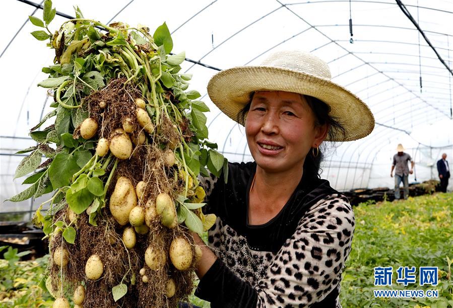9月23日,張北縣小二臺(tái)鎮(zhèn)一家馬鈴薯育種中心的工人在大棚內(nèi)展示收獲的脫毒微型薯。 近年來(lái),地處壩上地區(qū)的河北省張北縣因地制宜,積極推進(jìn)馬鈴薯產(chǎn)業(yè)化發(fā)展,形成了馬鈴薯繁種育種、商品薯種植、倉(cāng)儲(chǔ)、加工為一體的產(chǎn)業(yè)鏈,帶動(dòng)農(nóng)民增收致富。 新華社記者楊世堯攝