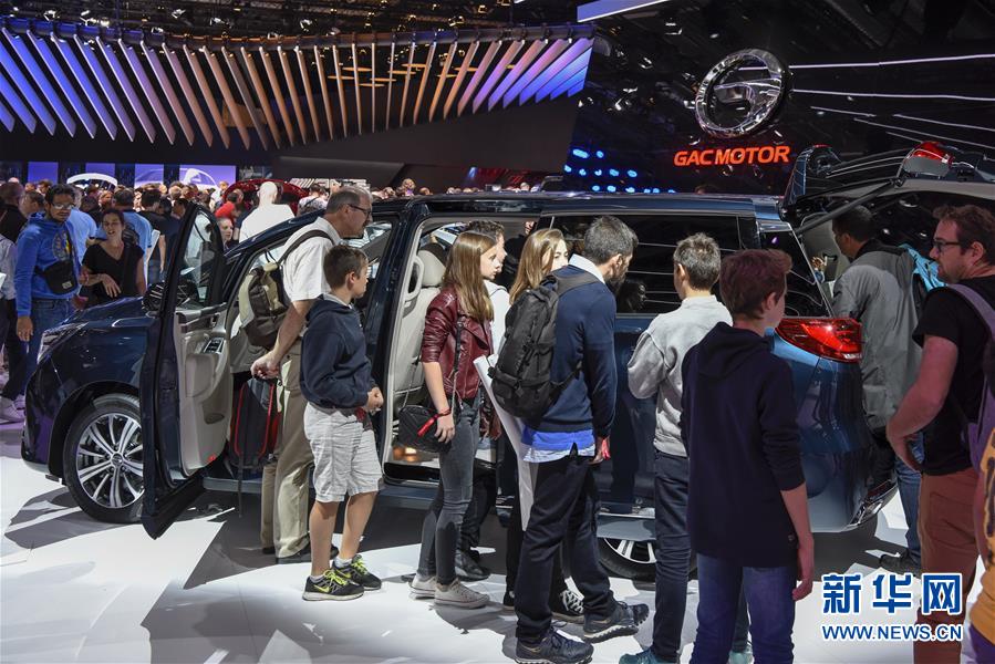 10月14日,在法國巴黎國際車展上,人們參觀廣汽傳祺品牌展臺(tái)。 當(dāng)日,2018年巴黎國際車展閉幕。據(jù)主辦方統(tǒng)計(jì),超過100萬人次參觀了本屆車展。 新華社記者 陳益宸 攝