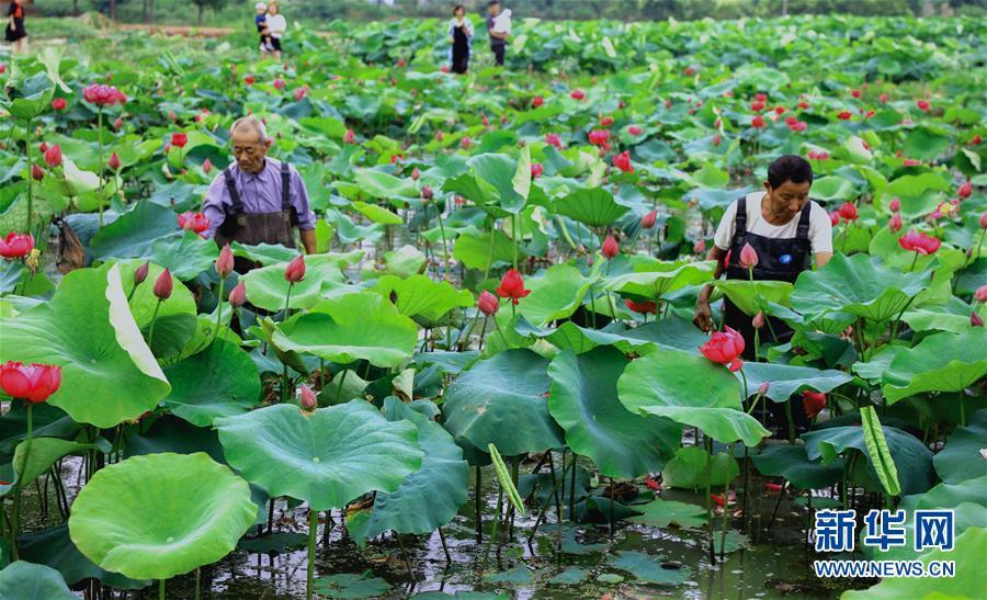 6月3日,荷農(nóng)們將觀賞性荷花裝盆準(zhǔn)備銷售。 進(jìn)入初夏時節(jié),浙江省湖州市長興縣呂山鄉(xiāng)圣蓮苑荷花基地內(nèi)200多畝30多種各色荷花競相開放,該基地也迎來了荷花銷售和旅游觀光的旺季。據(jù)介紹,呂山鄉(xiāng)是浙江省長興縣當(dāng)?shù)貍鹘y(tǒng)的蓮藕產(chǎn)區(qū),近年來開始逐步升級打造“荷花之鄉(xiāng)”。不同于傳統(tǒng)的種荷收藕的思路,當(dāng)?shù)亟柚吧鷳B(tài)+創(chuàng)意”的理念種植、銷售觀賞盆栽荷花,一畝觀賞性荷花的產(chǎn)值可達(dá)到8萬元,比普通種植蓮藕增收超過20倍,同時也推動了鄉(xiāng)村旅游經(jīng)濟(jì),帶動荷農(nóng)收入增長,助力鄉(xiāng)村振興。新華社記者徐昱 攝
