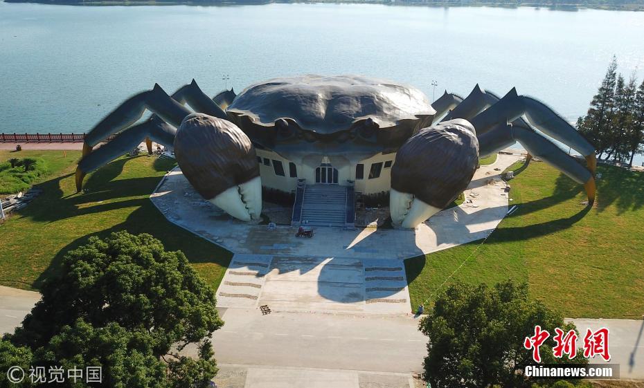 據(jù)了解,這是建造中的大閘蟹生態(tài)館,預(yù)計(jì)未來將在大閘蟹的白肚內(nèi)容納三層空間,集休閑、娛樂,以及有關(guān)大閘蟹體驗(yàn)于一體的設(shè)施。圖片來源:視覺中國(guó)