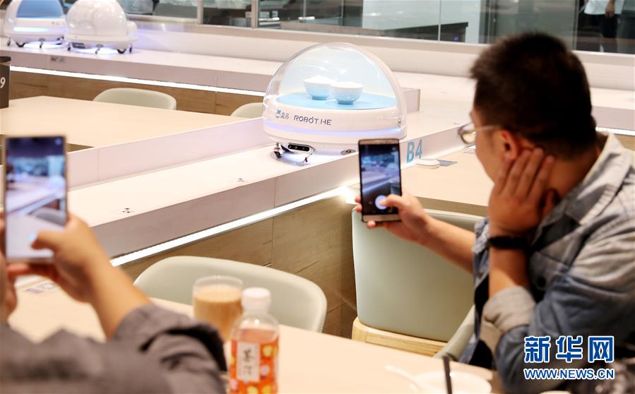 近日,一家由機器人充當送餐服務(wù)員的盒馬機器人餐廳現(xiàn)身上海國家會展中心,為顧客帶來一種用餐新選擇。