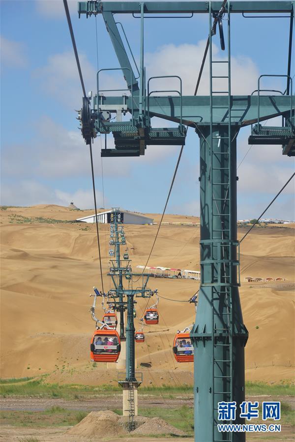 游客在庫(kù)布其沙漠中的內(nèi)蒙古鄂爾多斯市達(dá)拉特旗響沙灣景區(qū)的沙地上蕩秋千(7月31日攝)。依托庫(kù)布其沙漠特有的自然風(fēng)光和多年生態(tài)建設(shè)的成果,當(dāng)?shù)亟ǔ身懮碁?、七星湖、恩格貝等生態(tài)旅游景區(qū)。近十年來(lái),鄂爾多斯市生態(tài)旅游景區(qū)累計(jì)接待游客近1000萬(wàn)人次,實(shí)現(xiàn)收入24.6億元。