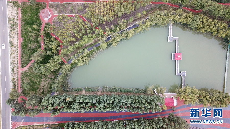 恩格貝生態(tài)示范區(qū)位于庫(kù)布齊沙漠中段,總面積200平方公里。這里曾經(jīng)風(fēng)沙肆虐,恩格貝生態(tài)示范區(qū)建設(shè)者經(jīng)過(guò)長(zhǎng)期艱苦奮斗,用雙手和鐵鍬“種”出一片人造沙漠綠洲,在沙漠里打造了一顆璀璨的生態(tài)明珠,如今這里是國(guó)家生態(tài)旅游示范區(qū)和國(guó)家4A級(jí)景區(qū)。月亮湖位于恩格貝生態(tài)示范區(qū)核心區(qū)域,周圍被綠色植被環(huán)繞,在無(wú)人機(jī)航拍視角下,猶如鑲嵌在沙漠綠洲里的一塊碧玉,呈現(xiàn)出大自然的和諧之美。(新華網(wǎng) 王宇 攝)