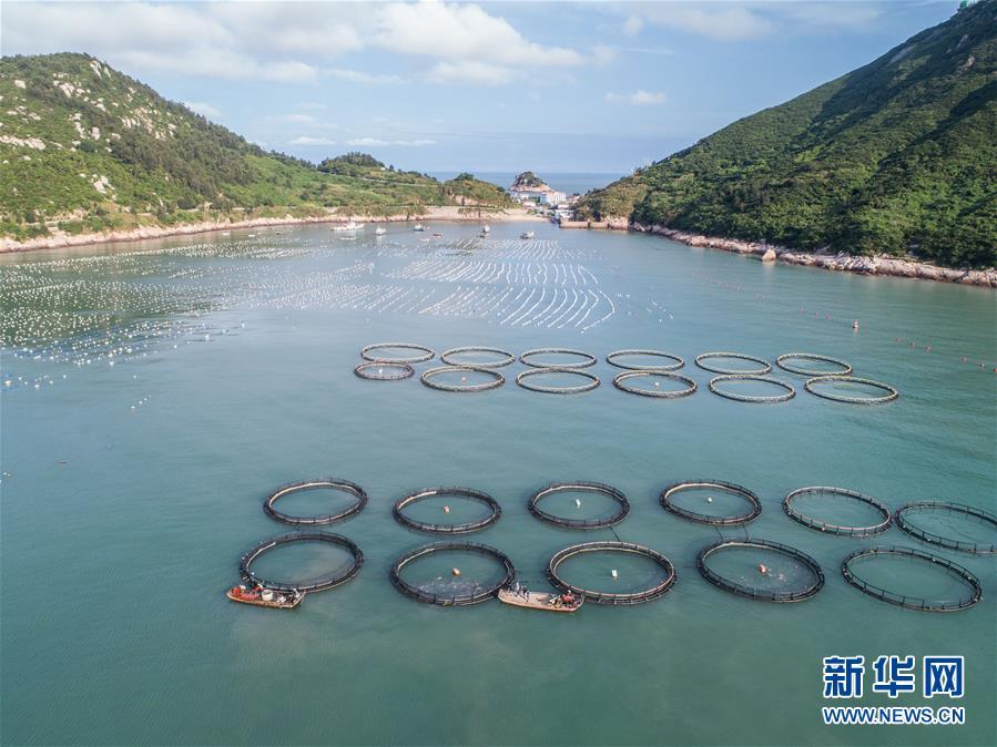 8月18日,南麂島海域的“海上牧場(chǎng)”養(yǎng)殖區(qū)內(nèi),漁民準(zhǔn)備進(jìn)行養(yǎng)殖作業(yè)(無人機(jī)拍攝)。進(jìn)入8月,浙江省溫州市平陽(yáng)縣南麂鎮(zhèn)海域上大片的大黃魚、貽貝等特色海產(chǎn)品養(yǎng)殖區(qū)域迎來豐收季節(jié),養(yǎng)殖戶們駕駛漁船在養(yǎng)殖區(qū)海域進(jìn)行打撈收獲,在碧海藍(lán)天下構(gòu)成了一幅“海上牧場(chǎng)”的美麗豐收景象。近年來,南麂鎮(zhèn)政府引導(dǎo)漁民養(yǎng)殖戶充分發(fā)揮“靠海吃海”的資源優(yōu)勢(shì),大力發(fā)展海洋養(yǎng)殖經(jīng)濟(jì)和海島旅游經(jīng)濟(jì),實(shí)現(xiàn)了南麂由“生態(tài)美”向“產(chǎn)業(yè)美”,“產(chǎn)業(yè)美”向“經(jīng)濟(jì)美”的轉(zhuǎn)變。同時(shí)該鎮(zhèn)堅(jiān)持以大黃魚、貽貝等為特色產(chǎn)業(yè)支撐,精準(zhǔn)發(fā)展高效海洋養(yǎng)殖業(yè),重點(diǎn)培養(yǎng)一批新型職業(yè)漁民,依靠專業(yè)技術(shù)支持,實(shí)現(xiàn)深海仿生養(yǎng)殖,讓好生態(tài)造就好品質(zhì),重點(diǎn)打造南麂養(yǎng)殖品牌,組建營(yíng)銷網(wǎng)絡(luò),拓展特色海產(chǎn)品市場(chǎng)。新華社記者 徐昱攝