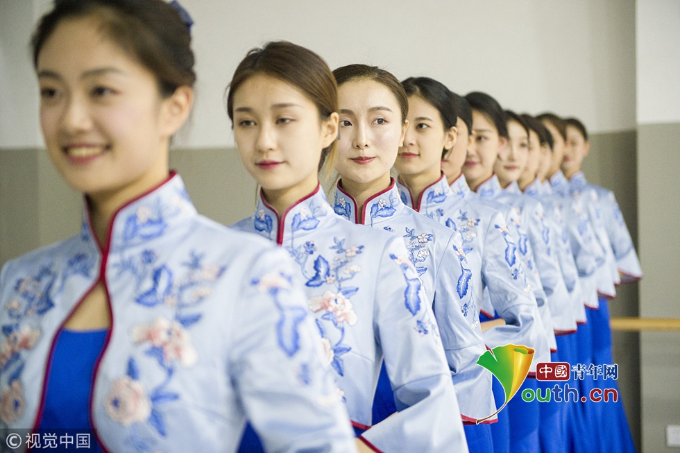 2018年10月15日,杭州,第五屆世界互聯(lián)網(wǎng)大會召開在即,來自浙江傳媒學(xué)院的禮儀志愿者們正在進行緊張有序的集中訓(xùn)練。圖片作者:浙江日報 馮賀/視覺中國