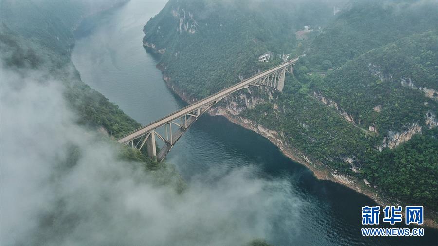 10月18日無(wú)人機(jī)航拍的江界河大橋。 新華社記者歐東衢攝