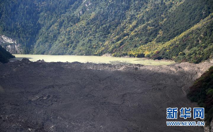 雅魯藏布江上的堰塞湖和堰塞體(10月18日攝)?!⌒氯A社記者 覺果攝