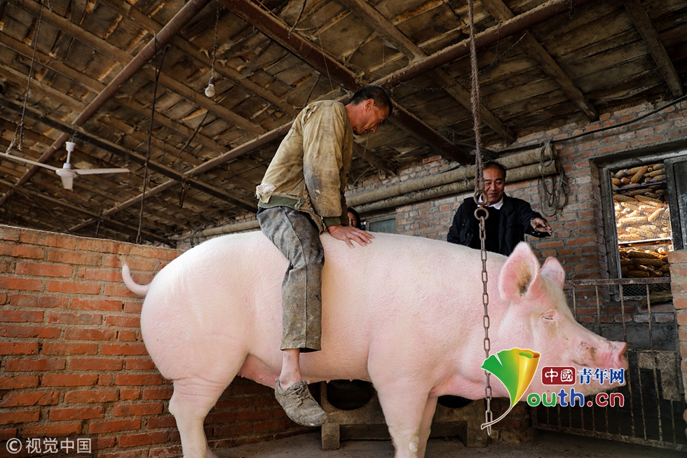 2018年10月16日,遼寧丹東,900斤重的大豬,堪稱豬中巨無(wú)霸,豈不是炙手可熱的網(wǎng)紅一枚?大小老板還不得帶上銀子蜂擁而至?然而,今年不行了,受遼寧多地豬瘟疫情影響,900斤大豬無(wú)人問(wèn)津。本想靠著這頭巨無(wú)霸大豬刷爆朋友圈甚至賣個(gè)大價(jià)錢(qián)的養(yǎng)豬人張先生,現(xiàn)在非常擔(dān)心一頭好豬爛在手上。10月16日,遼寧丹東。當(dāng)著來(lái)圍觀的鄉(xiāng)親的面,養(yǎng)豬人張先生小心翼翼地騎上了豬背,希望用這樣的造型求關(guān)注。
