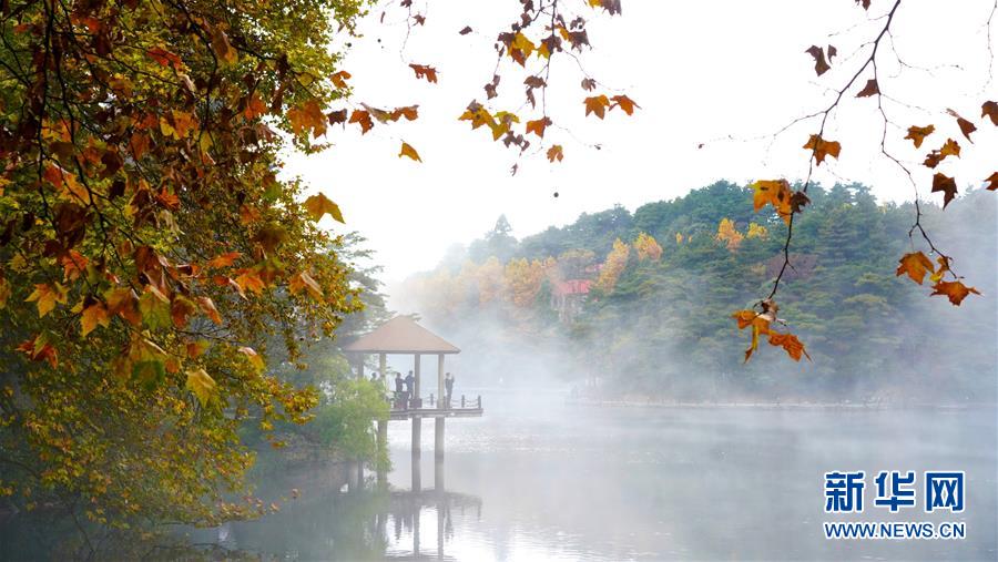 游客在九江市廬山風(fēng)景區(qū)內(nèi)的如琴湖旁參觀游玩(10月20日攝)?!⌒氯A社記者 胡晨歡 攝