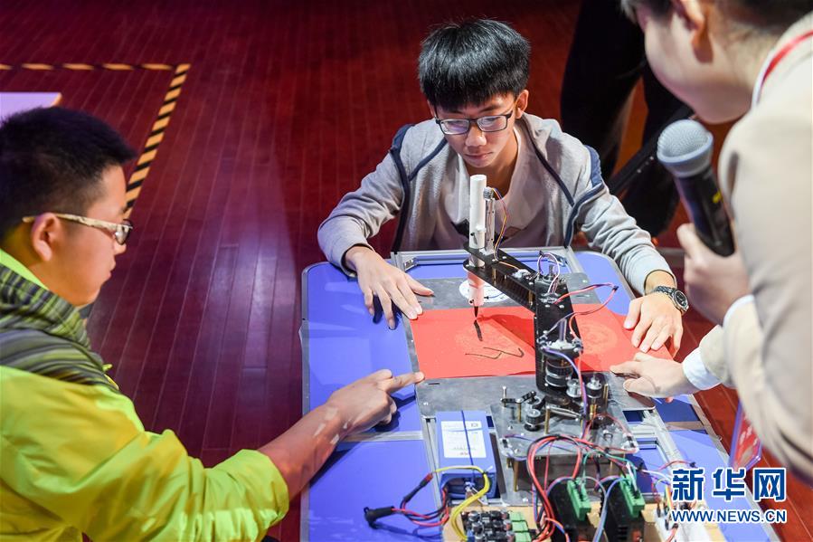 10月21日,在位于安徽合肥的中國科學技術大學,“Red Brick”隊參加機器人比賽。新華社記者張端攝