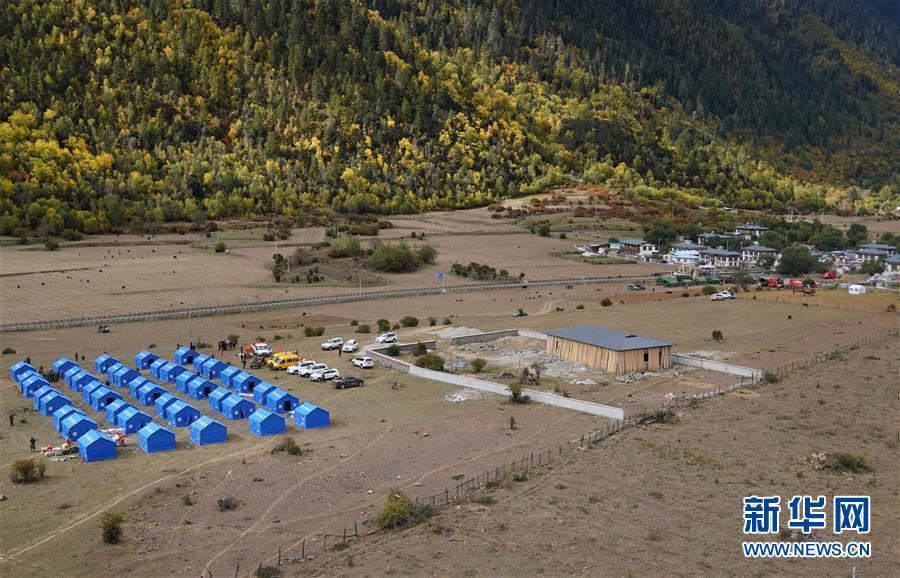 這是西藏昌都市江達縣波羅鄉(xiāng)一臨時過渡安置點(10月14日無人機拍攝)。
