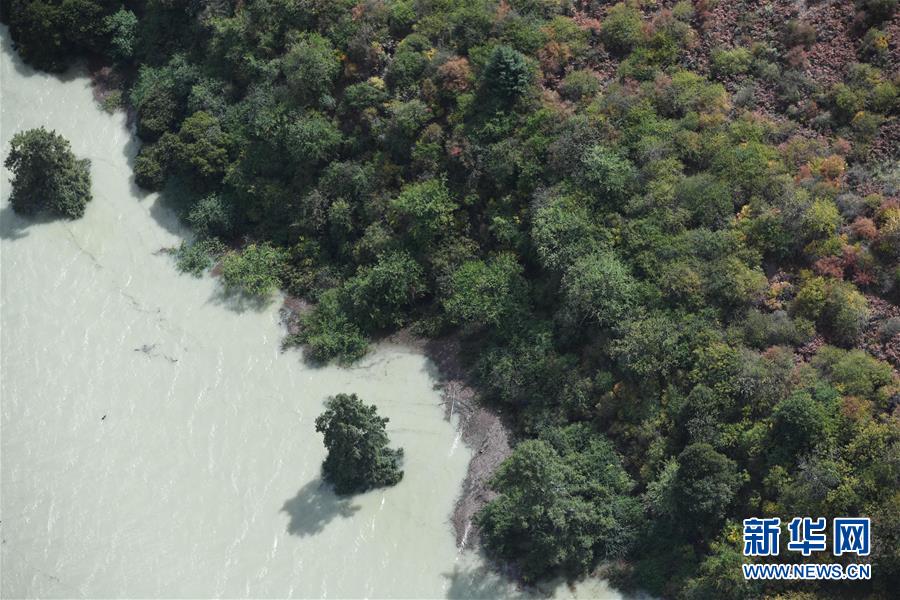 洪峰過境后的西藏雅魯藏布江墨脫段局部畫面(10月20日無人機拍攝)。 新華社記者劉東君攝
