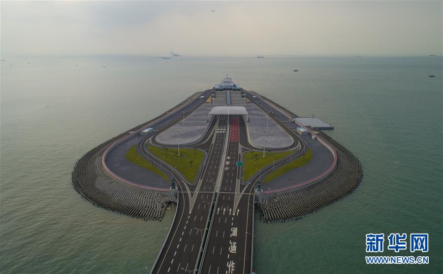 10月19日拍攝的港珠澳大橋東人工島。 港珠澳大橋開通在即。 新華社記者 李鋼 攝