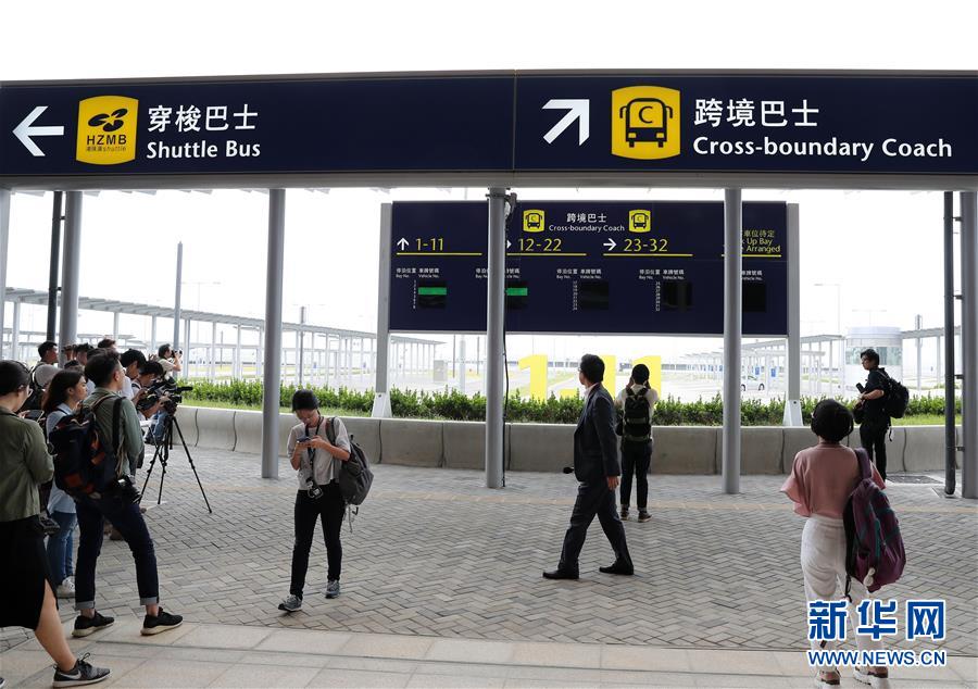10月19日拍攝的香港口岸穿梭巴士及跨境巴士上客區(qū)。 港珠澳大橋開通在即。 新華社記者 李鋼 攝