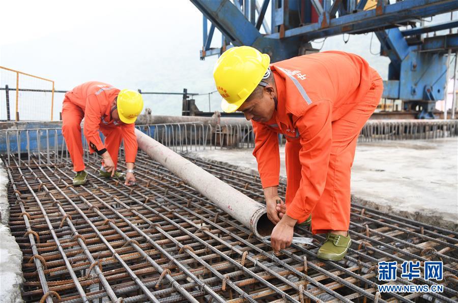10月23日,在重慶涪陵,施工人員在渝懷鐵路涪秀二線重點工程——烏江右線大橋主跨合龍現(xiàn)場作業(yè)。 當(dāng)日,由中鐵四局承建的渝懷鐵路涪秀二線重點工程——烏江右線大橋主跨成功合龍,標(biāo)志著大橋主體工程全部順利結(jié)束。烏江右線大橋項目全程460.1米,主跨192米,跨越烏江和319國道。在兩年多的建設(shè)過程中,施工人員攻克了“不等高墩”“不對稱邊跨”“邊跨入隧”等多個技術(shù)難題。 新華社記者王全超攝