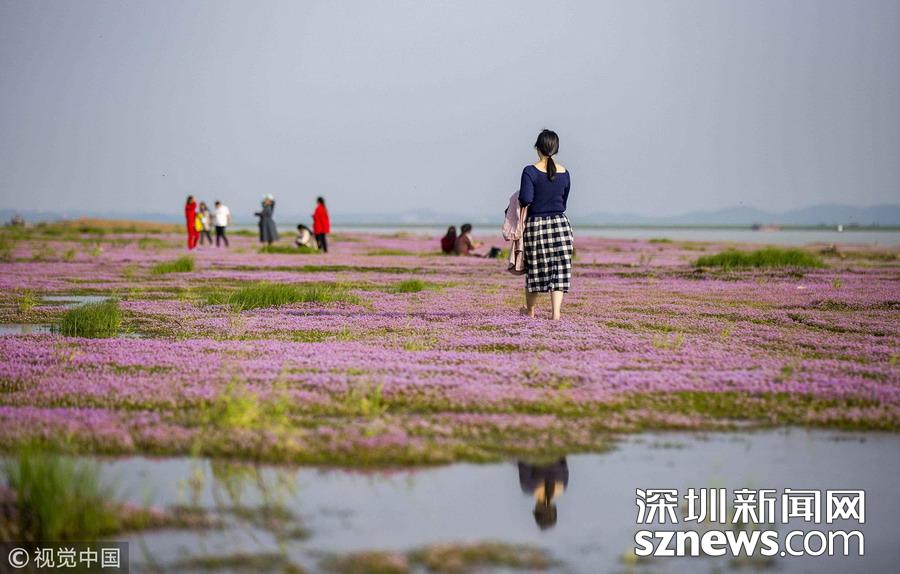 深圳新聞網(wǎng)訊 2018年10月23日,南昌,游人在江西鄱陽(yáng)湖都昌濕地蓼子花海內(nèi)游玩。連日來(lái),中國(guó)第一大淡水湖江西鄱陽(yáng)湖濕地大面積蓼子花開(kāi)放,秋景宜人,紫色的花海吸引大批游客前來(lái)賞景游玩。