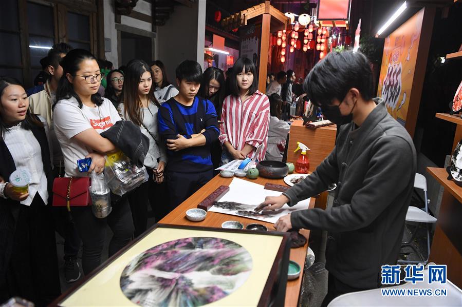 10月29日,在首屆天下碼商大會(huì)碼商集市上,觀(guān)眾觀(guān)看手指作畫(huà)。 10月28日至30日,由福州市政府聯(lián)合支付寶主辦的首屆天下碼商大會(huì)在福建福州舉行。 新華社記者 姜克紅 攝