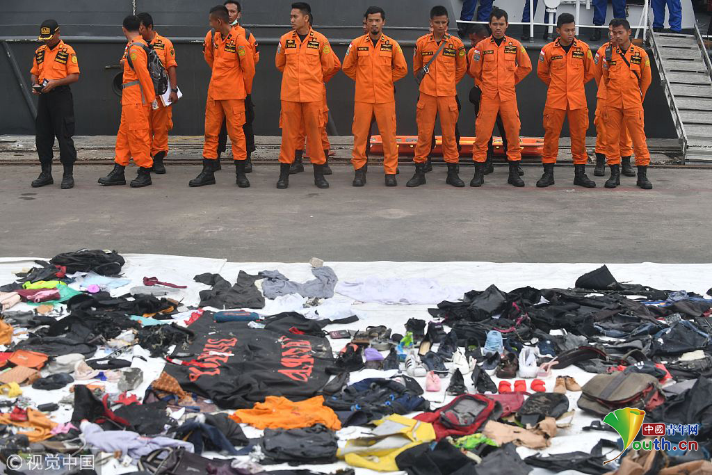 當(dāng)?shù)貢r(shí)間2018年10月30日,印尼雅加達(dá), 印尼搜救隊(duì)持續(xù)打撈出獅航墜毀客機(jī)遇難者遺物和飛機(jī)殘骸。一架載有189人的印尼獅子航空(Lion Air Air)客機(jī)在從首都雅加達(dá)飛往邦加檳港過(guò)程中墜海。機(jī)上載有181名乘客,6名機(jī)組人員和2名飛行員,乘客中包括20名官員。圖片作者:ADEK BERRY