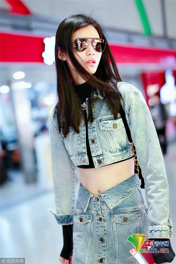 奚夢瑤一身帥氣牛仔裝 露細腰長腿顯 ...