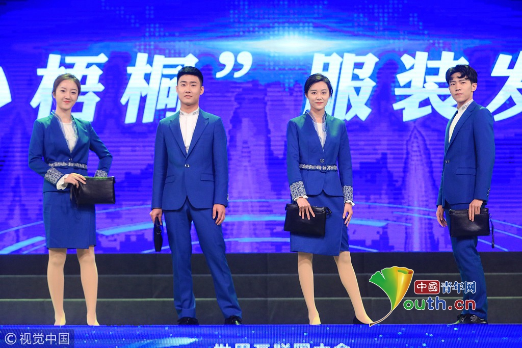 2018年11月1日,浙江省桐鄉(xiāng)市,第五屆世界互聯(lián)網(wǎng)大會志愿者“小梧桐”出征。圖片作者:王振宇/視覺中國