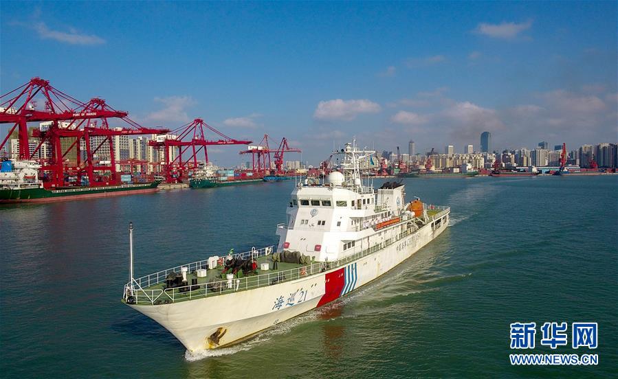 11月3日,“海巡21”輪準(zhǔn)備出發(fā)。當(dāng)日,隨著“海巡21”輪緩緩駛離海口海事監(jiān)管基地碼頭,由瓊桂粵海事部門(mén)共同開(kāi)展的瓊州海峽、北部灣及環(huán)海南島水域跨轄區(qū)聯(lián)合巡航執(zhí)法活動(dòng)揭開(kāi)序幕。新華社記者楊冠宇攝