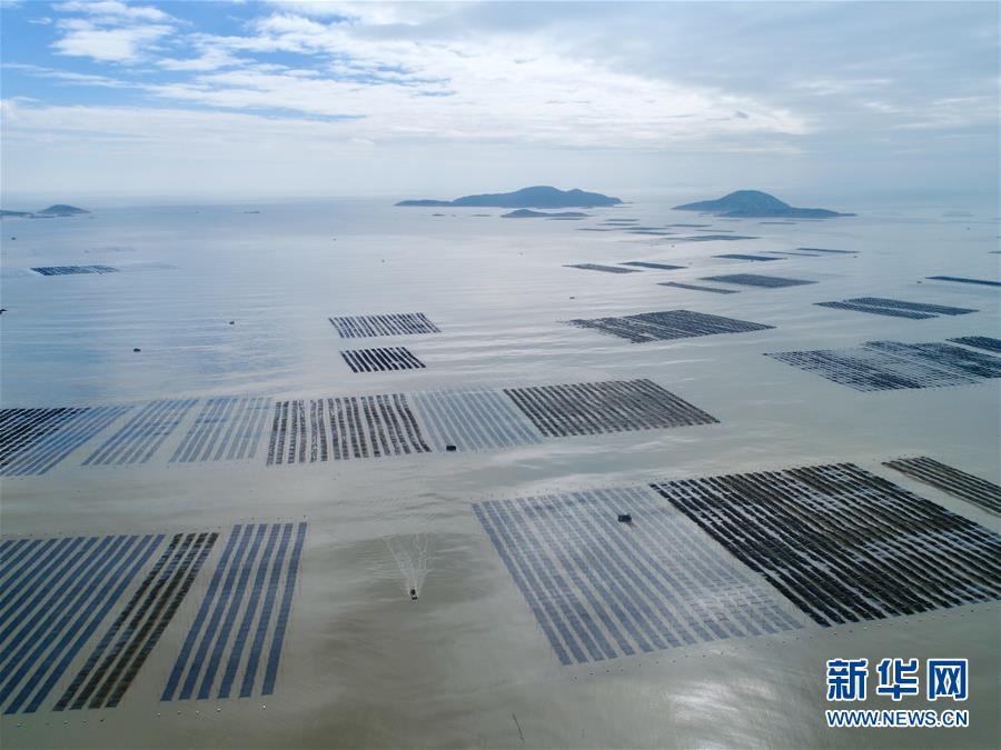 這是11月4日無人機(jī)拍攝的霞浦縣三沙鎮(zhèn)的紫菜種植區(qū)。 近日,福建省霞浦縣沿海6萬畝紫菜迎來收獲季節(jié),漁民們出海收獲紫菜,海上田園一派繁忙豐收景象。 新華社記者 姜克紅 攝