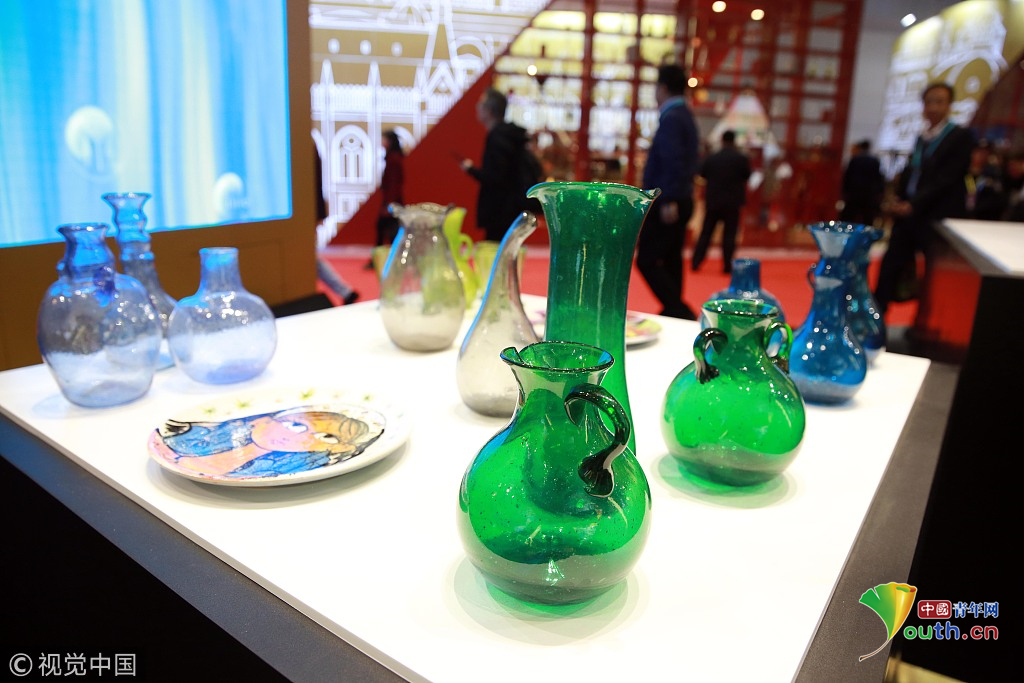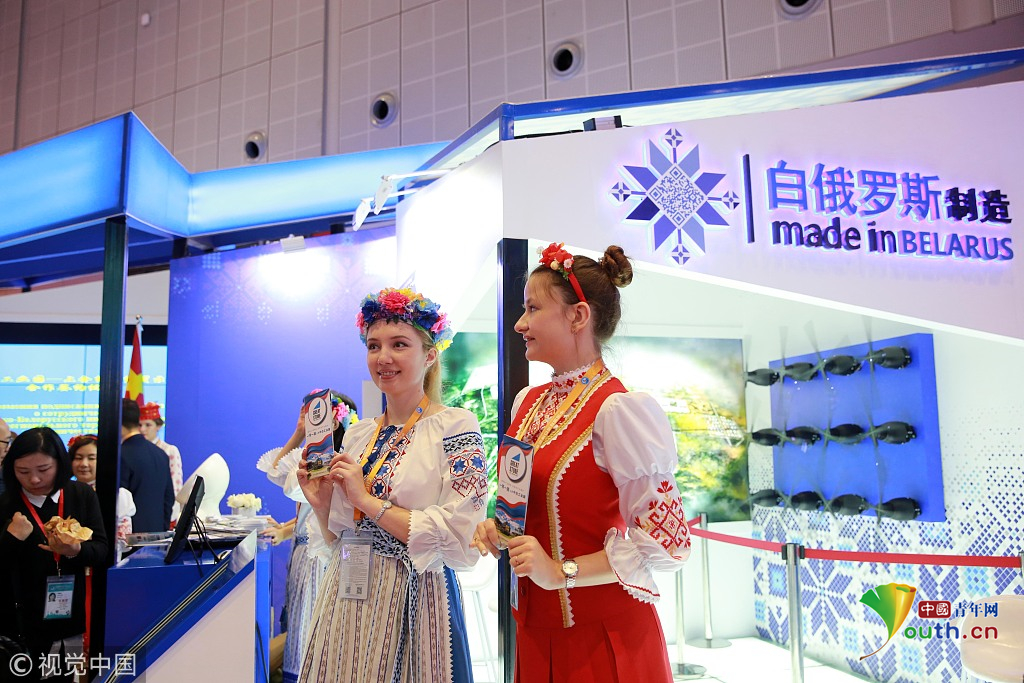 2018年11月6日,上海,首屆中國國際進口博覽會國家展上,共有82個國家、3個國際組織設(shè)立了71個展臺。白俄羅斯館。視覺中國