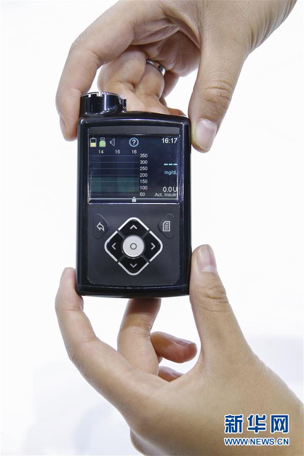 11月6日,美國美敦力公司工作人員展示采用智能算法的混合閉環(huán)胰島素泵。該產(chǎn)品能夠根據(jù)實時動態(tài)血糖曲線調(diào)整基礎(chǔ)胰島素輸注,并且在低血糖事件發(fā)生前停止胰島素輸注,實現(xiàn)接近“人工胰腺”的功能。 新華社記者 張玉薇 攝