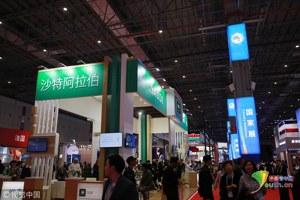 2018年11月6日,上海,首屆中國國際進口博覽會國家展上,共有82個國家、3個國際組織設(shè)立了71個展臺。沙特阿拉伯館。視覺中國