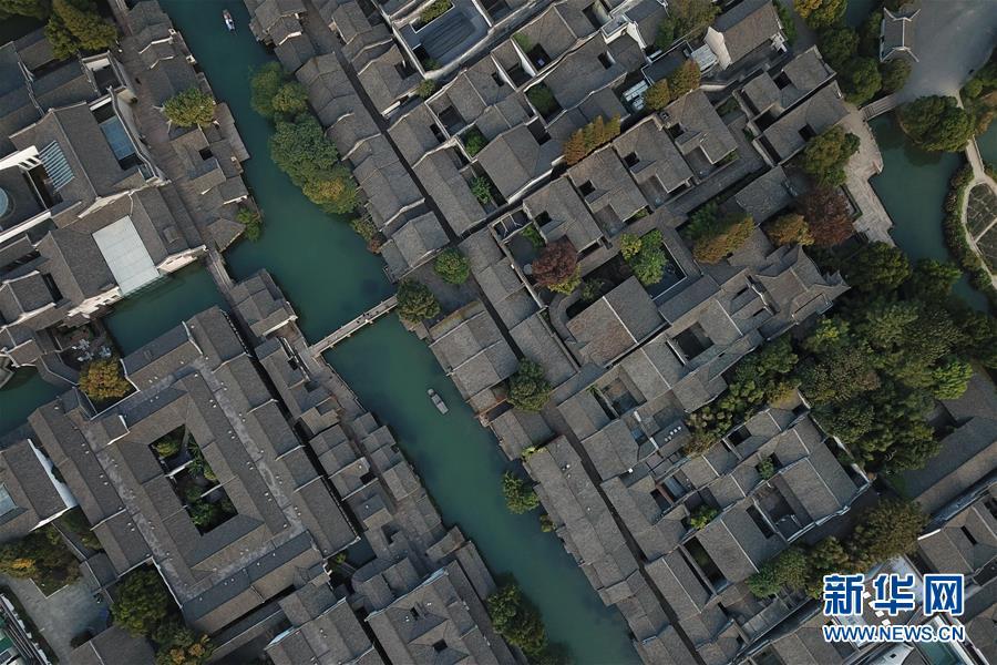 這是10月31日無(wú)人機(jī)拍攝的烏鎮(zhèn)西柵景區(qū)。 新華社記者黃宗治攝