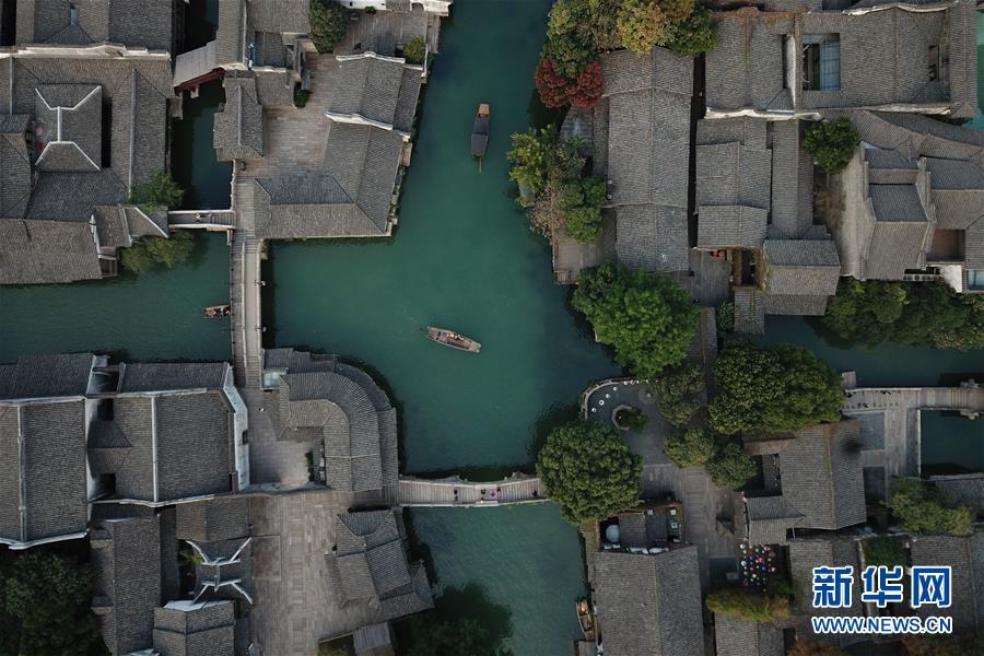 這是10月31日無人機拍攝的烏鎮(zhèn)西柵景區(qū)。 新華社記者黃宗治攝