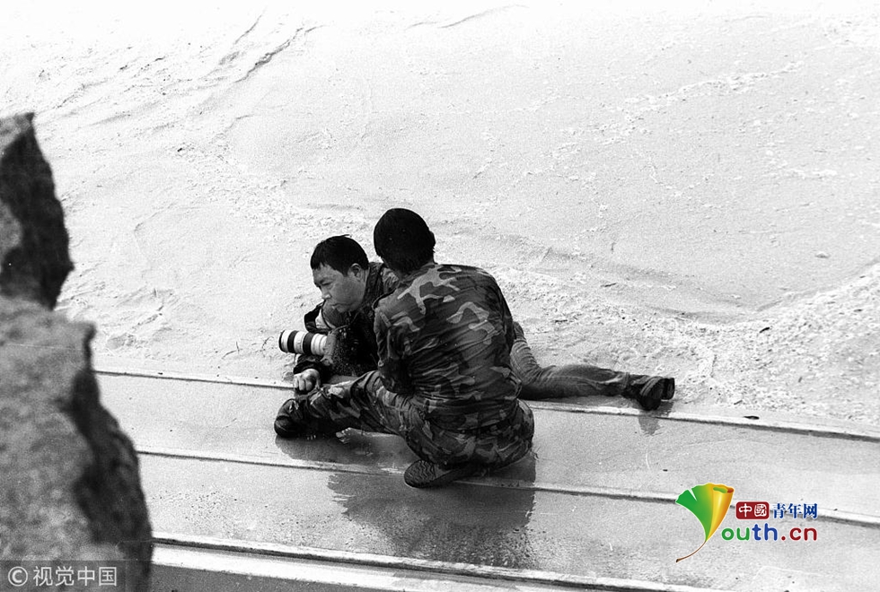 2000年10月10日,華商報記者鄧長泰在渭河決口處采訪時落入激流。 華商報記者 鄧長泰 圖片作者:胡國慶/視覺中國
