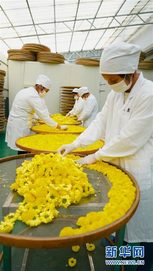 11月8日,婺源縣一家皇菊加工廠的工作人員在篩選皇菊。 新華社記者 胡晨歡 攝