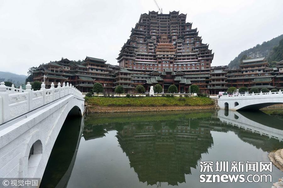 深圳新網(wǎng)網(wǎng)訊 始建于2016年9月的貴州省獨(dú)山縣水司樓已進(jìn)入工程收尾階段。雄偉壯麗造型別致的水司樓,是集會(huì)展博覽、酒店住宿、游覽觀光等于一體的大型綜合體。除具有水族特色元素外,該建筑還融合了苗族、布依族特色,是獨(dú)山縣凈心谷景區(qū)最具標(biāo)志性的宏大建筑。該樓占地面積5900平方米,總建筑面積60000平方米,樓高99.9米,共24層,是世界上最高大最大最壯觀的水族建筑,被稱為“天下第一水司樓”。 水司樓是按照水族依山畔水而居的傳統(tǒng)習(xí)俗和建筑特征修建,是水族人民的文化符號(hào)和智慧的象征,背靠?jī)粜暮庸壬郊梗曰⌒蔚钠矫娌季帜J?,如同張開(kāi)懷抱的巨人,緊擁美麗的姻脂河灣,設(shè)計(jì)巧妙,工藝精巧。