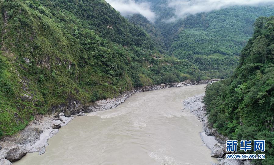 洪峰過(guò)境后的西藏雅魯藏布江墨脫段局部畫(huà)面(10月20日無(wú)人機(jī)拍攝)。 新華社記者劉東君攝