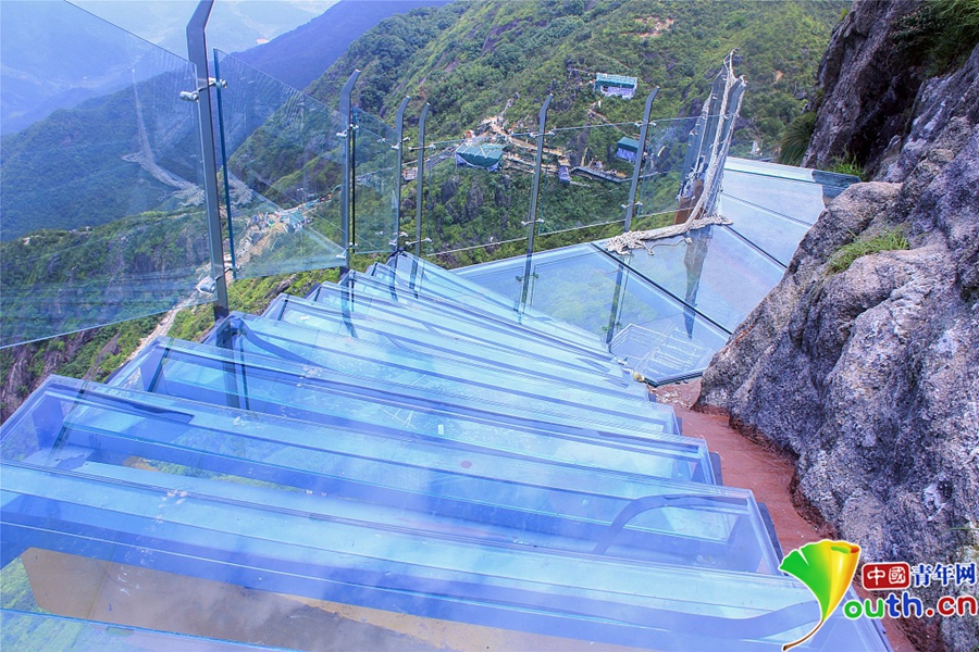 經過一年的建設,位于素有“嶺南第一險峰”與“南粵小華山”之稱的廣東清遠連山金子山,有一條玻璃天梯建成。下個月10日,玻璃天梯將正式對游客開放。